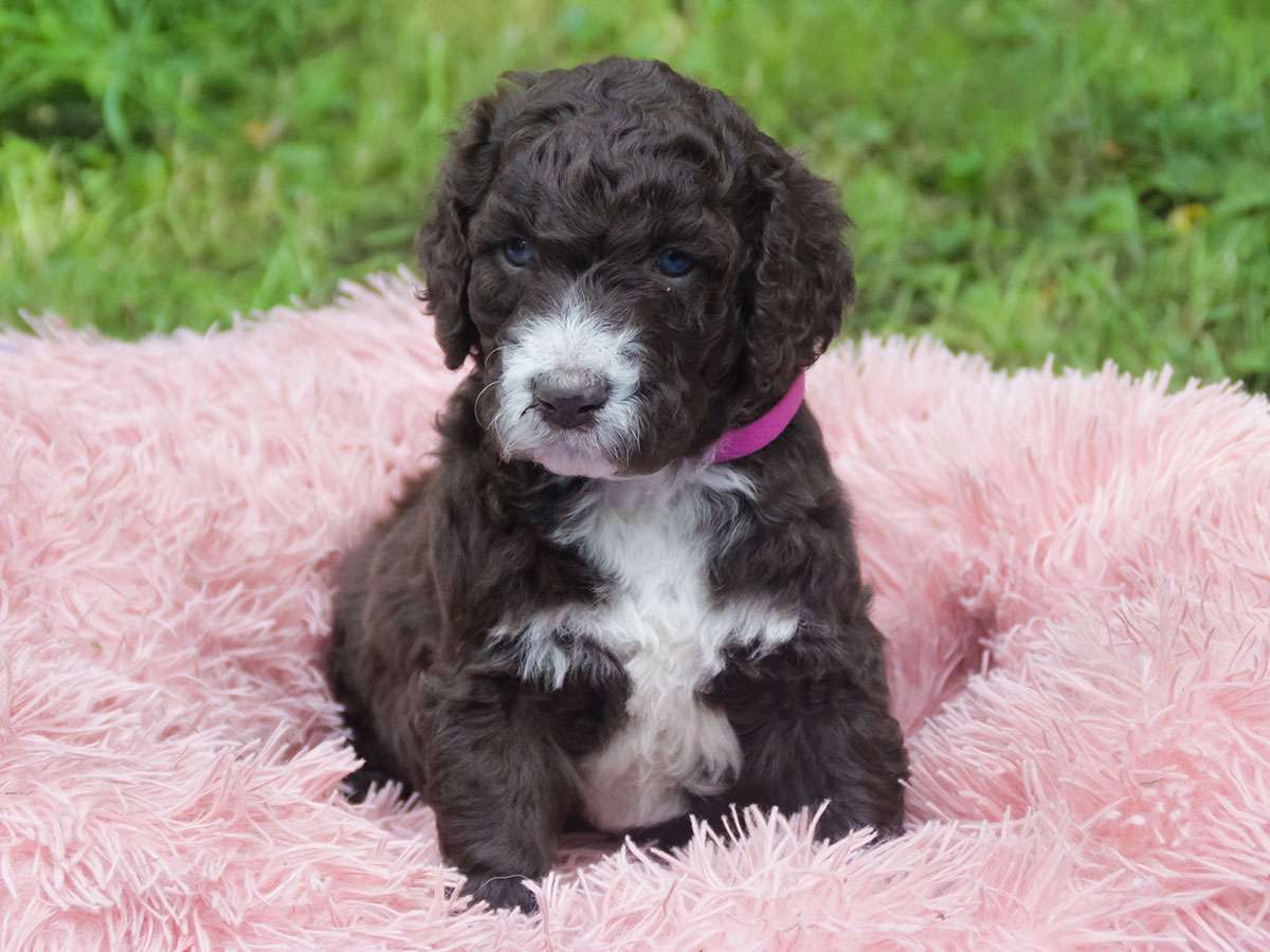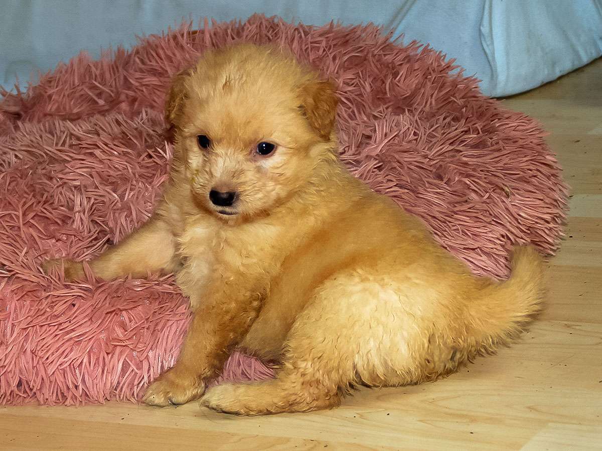 Die Eltern sind Campino Zwergpudel und Cinamon Goldendoodle F1b